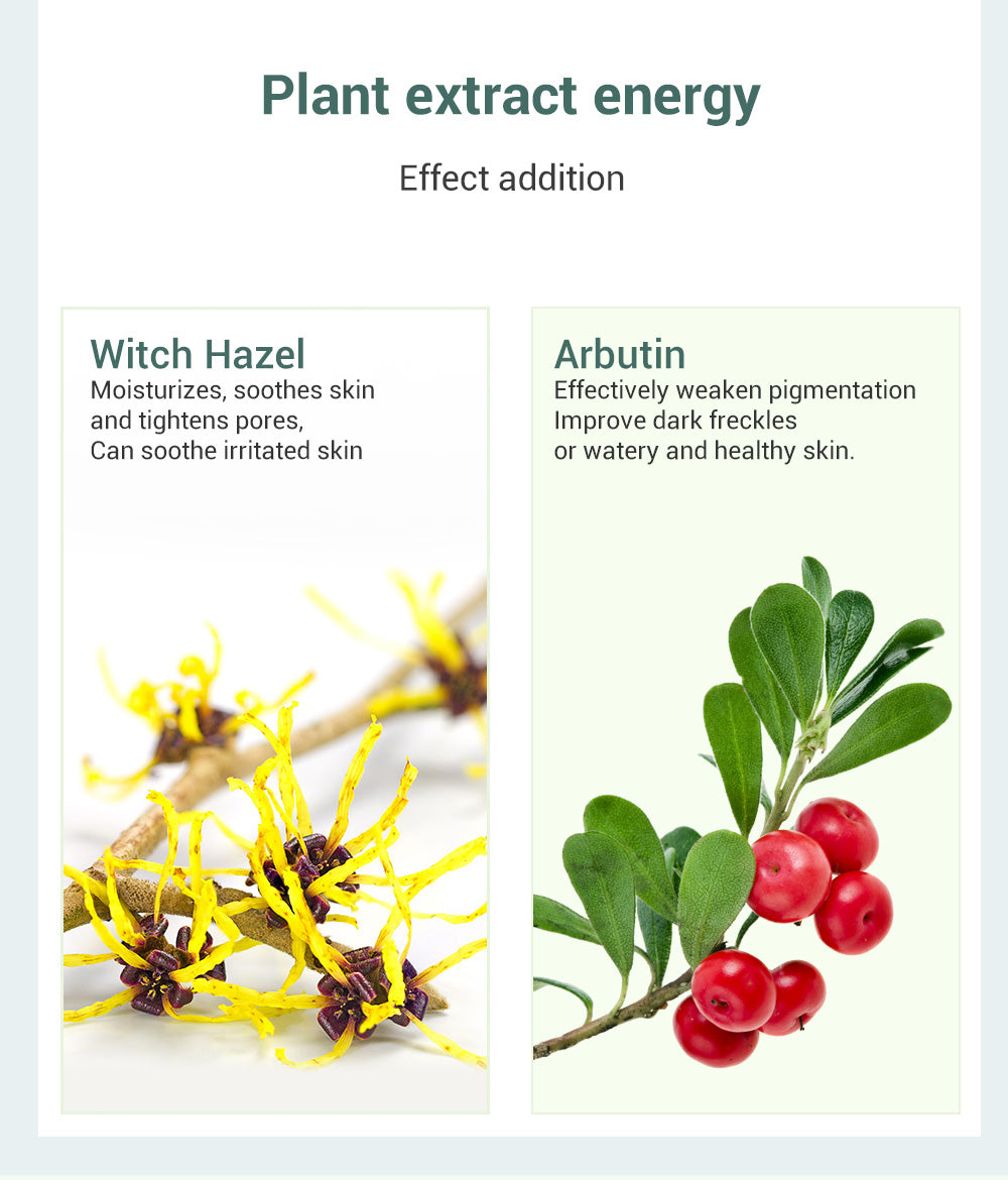 Arbutin: Effectively reduce pigmentation Recover skin's smoothness and wetness.